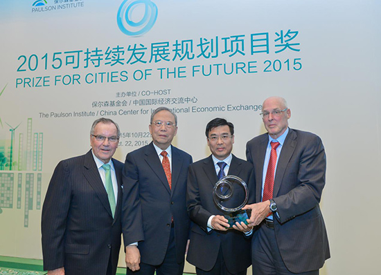 北京市副市长林克庆接受曾培炎先生和保尔森先生颁发“可持续发展规划项目奖”